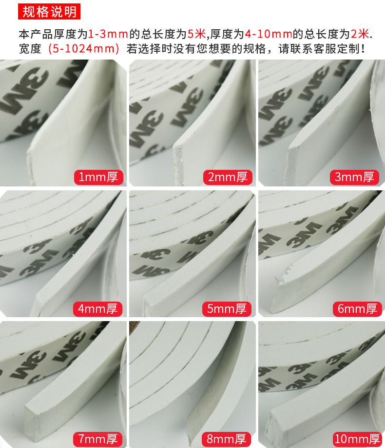 本產品厚度為1-3mm的總長度為5米,厚度為4-10mm的總長度為2米